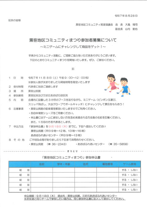 参加をご希望される方はダウンロードしたファイルに必要事項をご記入の上、あおばふれあいセンターにご提出ください。